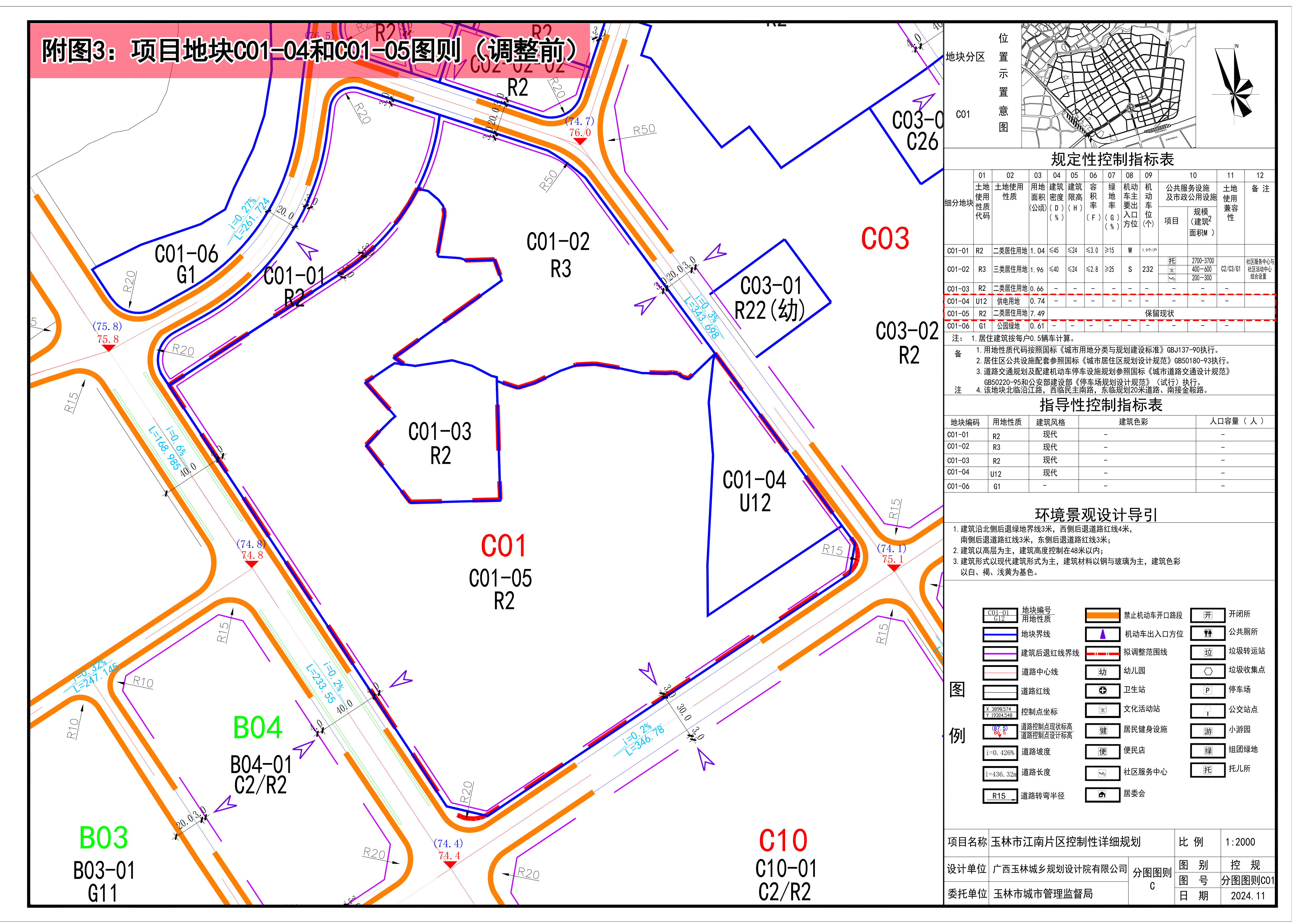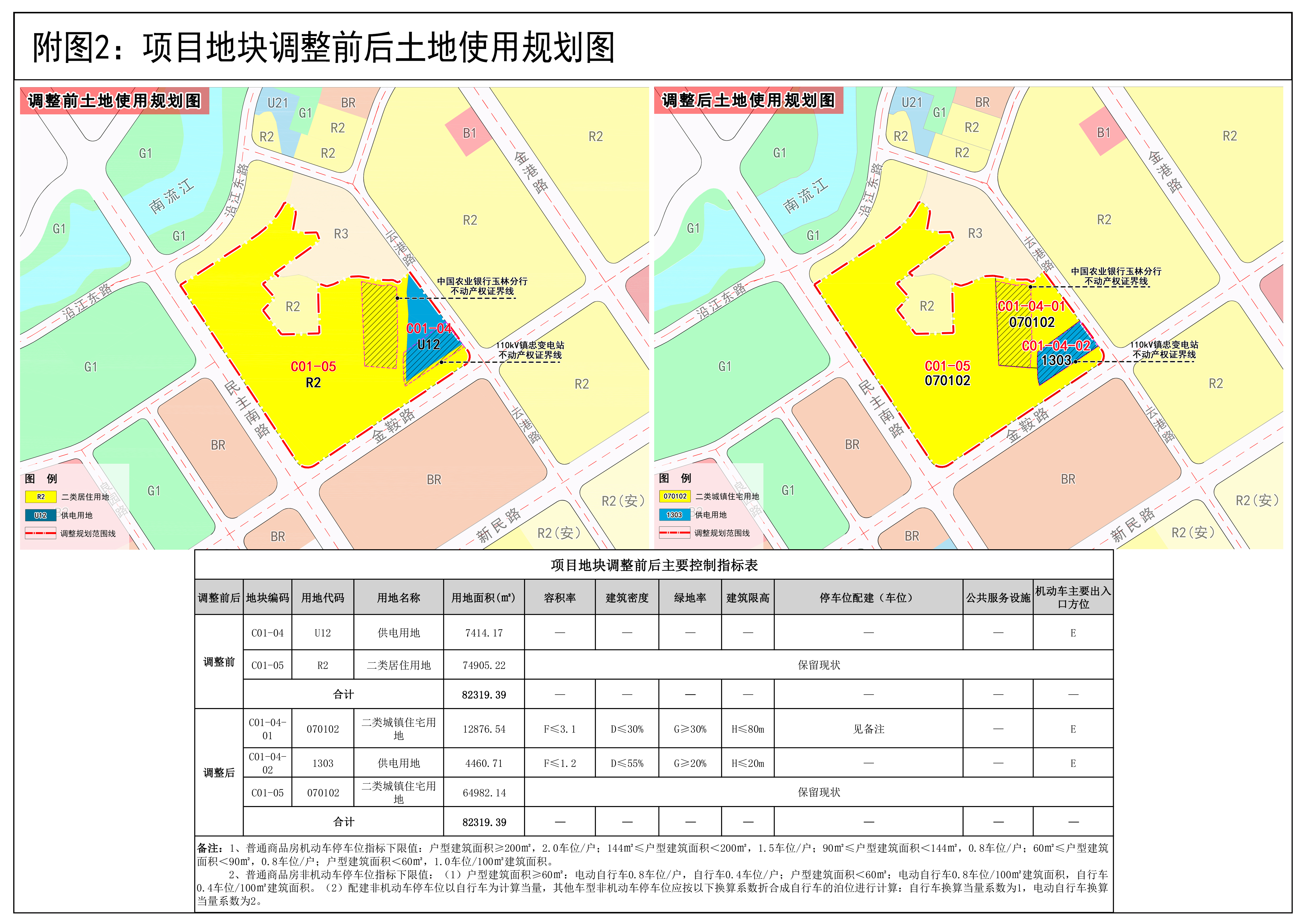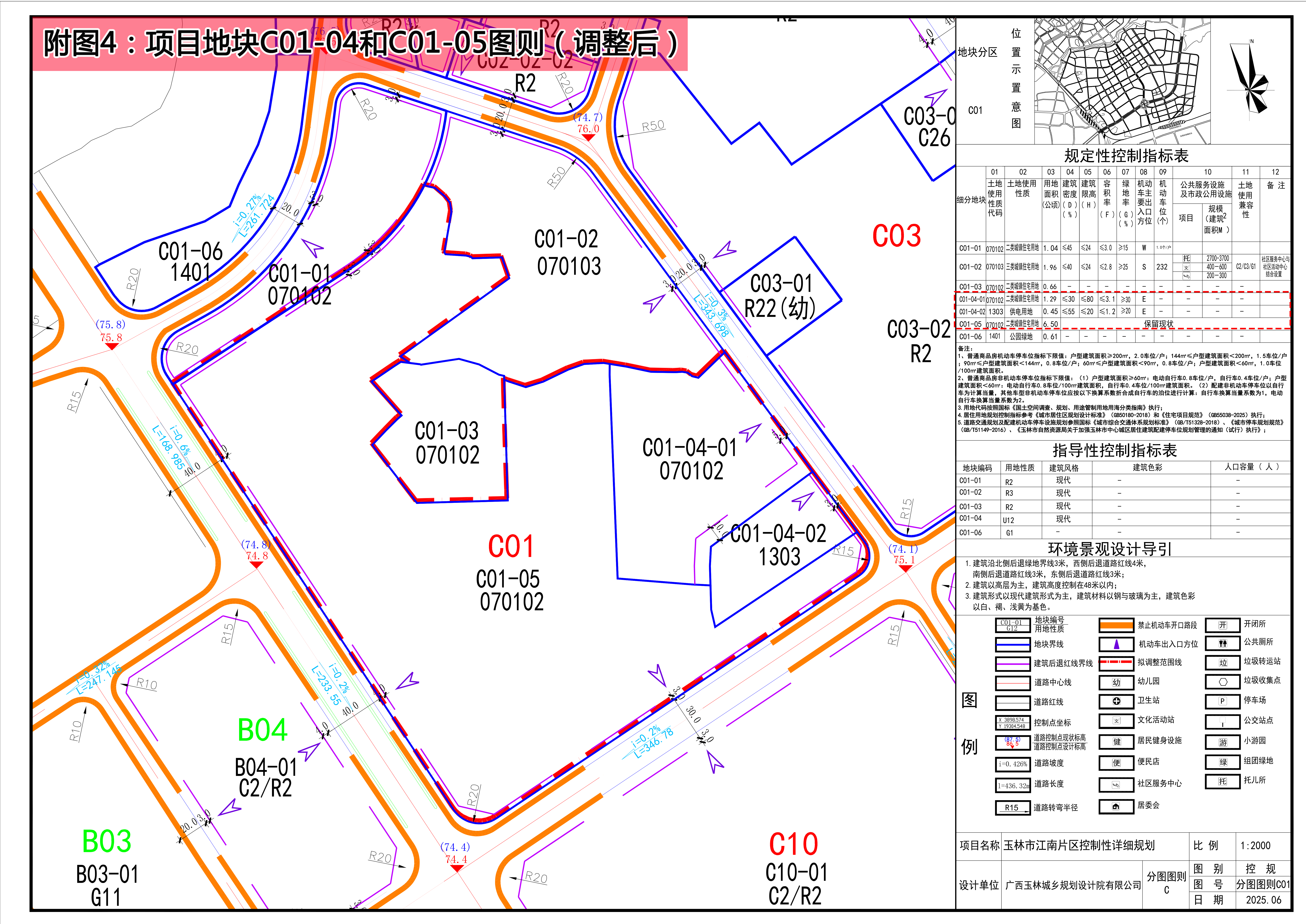 《玉林市江南片区控制性详细规划》C01-04和C01-05地块主要修改内容为用地性质修改和规划控制指标修改,调整前后地块规划及控制指标等详见附图。