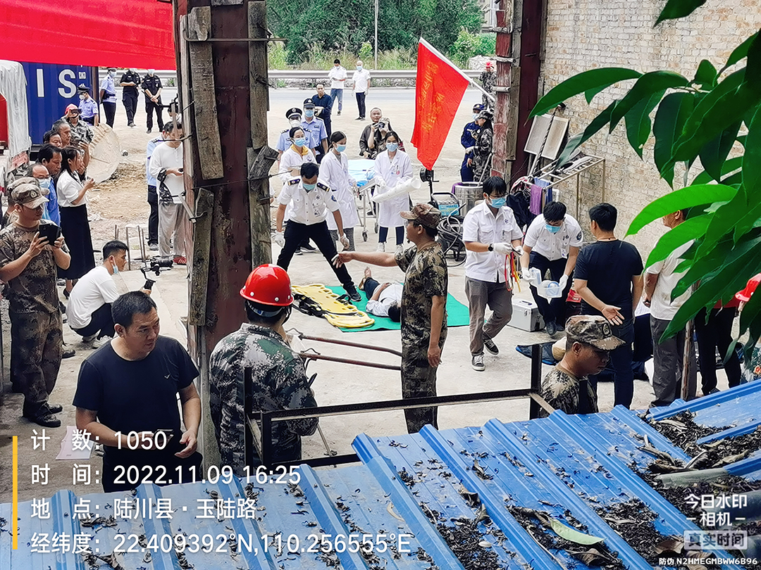 11月9日,玉林市自然资源局积极参与2022年玉林市自然灾害综合应急演练,以演促练、以练促战,未雨绸缪,筑牢安全防线。演练模拟背景为玉林市陆川县米场镇南中村同时受5.3级地震和台风影响,人民群众生命财产安全受到威胁。接到演练指令后,玉林市自然资源局迅速启动应急响应,紧急派出专业技术队伍前往地质灾害点实施救援。到达现场后,专业技术队伍第一时间向灾害现场相关人员了解情况,并通过遥感测绘、无人机、技术调查等手段,开展地质灾害现场调查和监测,勘察现场情况并提出处置措施。“报告指挥部,受地震影响,米场镇范围发生多处山体崩塌滑坡等次生地质灾害,自然资源部门已开展全面的排查和巡查,共排查出地质灾害30多起,灾害已造成20多间房屋损毁,2人受伤,无人员死亡。造成人员受伤的地质灾害点位于米场镇南中村河垌启队,崩塌致2间房屋倒塌,2人被埋。玉林市自然资源局与当地政府已迅速开展救援,挖出被困人员并送医救治。”该局专业技术队伍第一时间便向指挥部报告了最新灾情和处置情况。在本次演练中,玉林市自然资源局积极配合各参演队伍,行动迅速,处置有力,达到了预期效果。此次演练,检验了该局应急队伍的快速应对能力、技术装备的合理配置和指挥协同能力,提升了地灾抢险实战能力。玉林市自然资源局表示,下一步将结合此次实战演练中存在的不足进一步完善应急预案,压紧压实工作责任,不断提高防灾救灾能力,确保地质灾害来临时,拉得出、用得上,把灾害损失降到最低,确保广大人民群众生命财产安全。