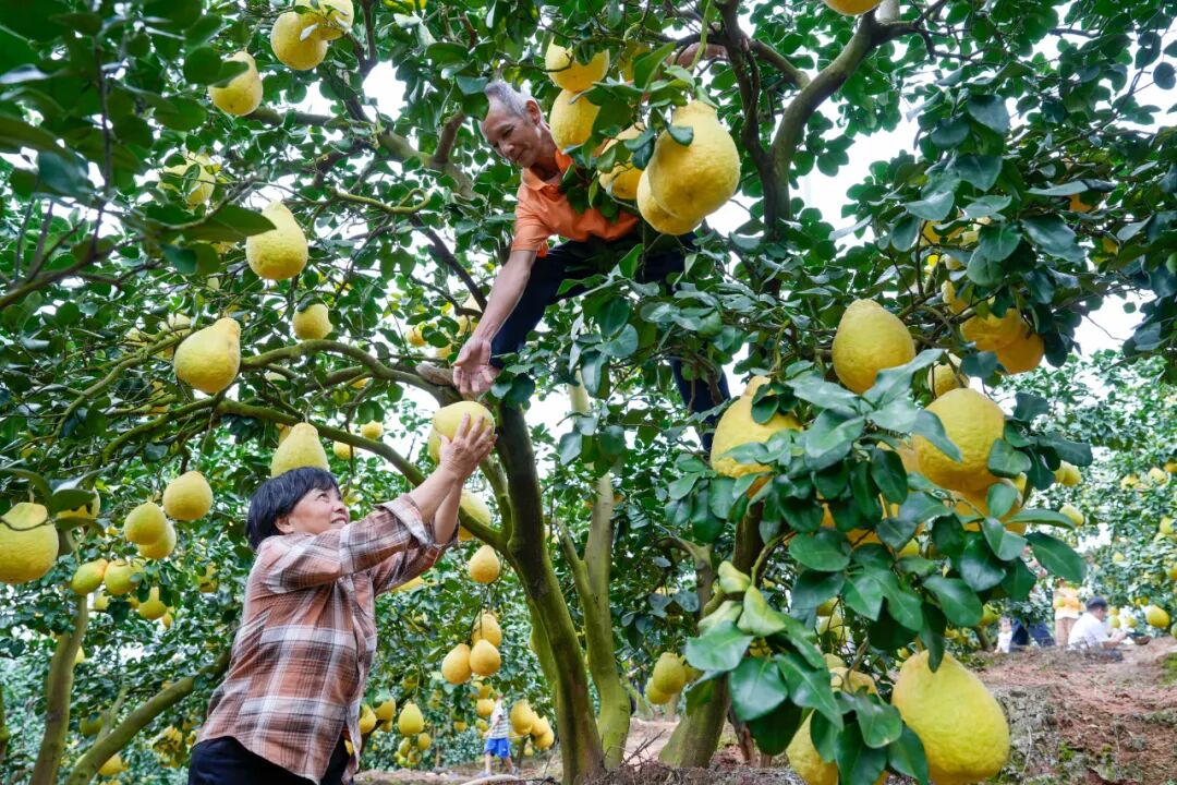 时下正是柚子的丰收时节,在玉林市容县自良镇古济村农户的柚园里,沉甸甸的果实缀满枝头,当地种植户又迎来一个收获季。