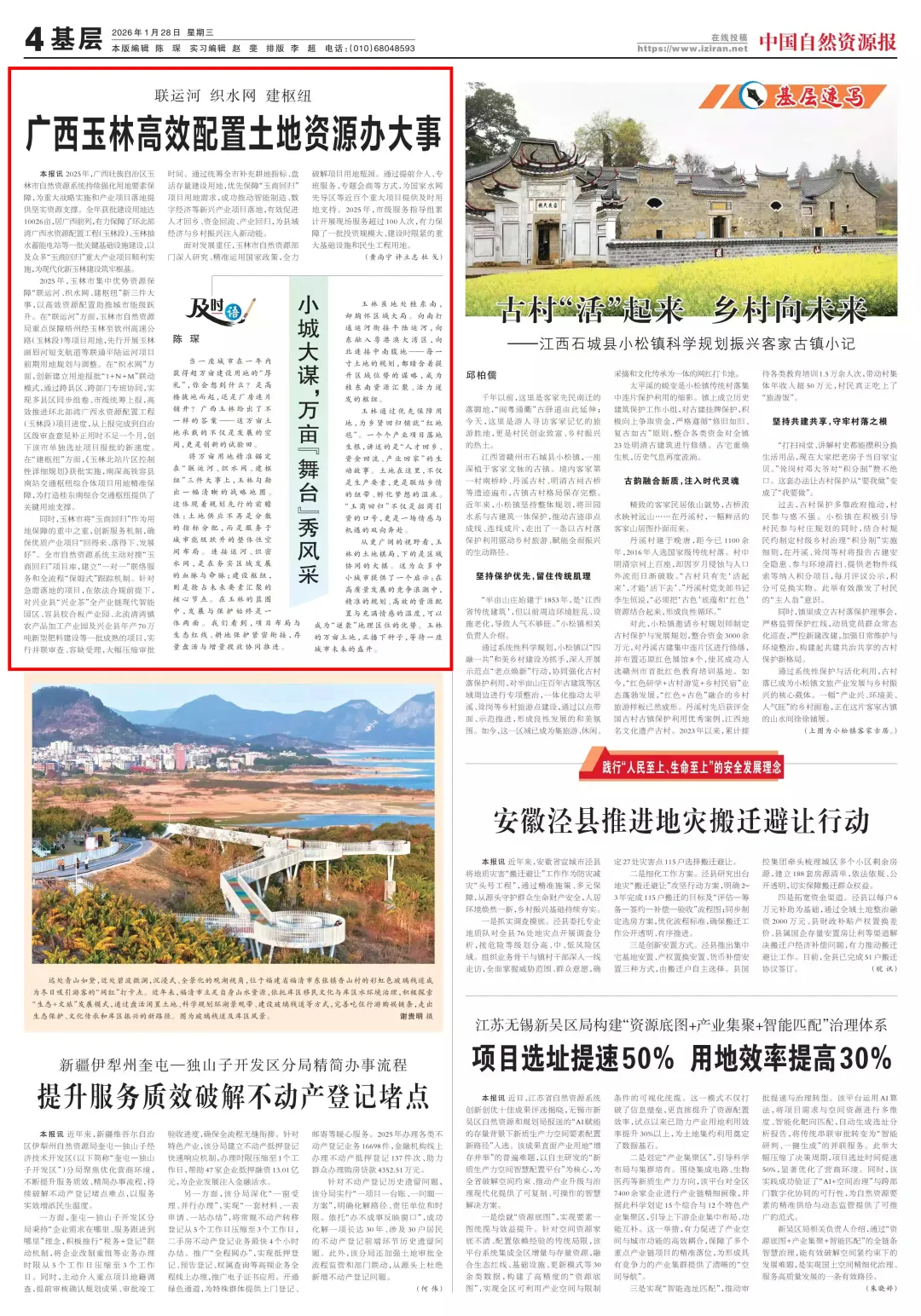 2025年,玉林市集中优势资源保障“联运河、织水网、建枢纽”新三件大事,以高效资源配置助推城市能级跃升。在“联运河”方面,玉林市自然资源局重点保障梧州经玉林至钦州高速公路(玉林段)等项目用地,先行开展玉林画眉河短支航道等联通平陆运河项目前期用地规划与调整。在“织水网”方面,创新建立用地报批“1﹢N﹢M”联动模式,通过跨县区、跨部门专班协同,实现多县区同步组卷、市级统筹上报,高效推进环北部湾广西水资源配置工程(玉林段)项目进度,从上报完成到自治区级审查意见补正用时不足一个月,创下该市单独选址项目报批的新速度。在“建枢纽”方面,《玉林北站片区控制性详细规划》获批实施,南深高铁容县南站交通枢纽综合体项目用地精准保障,为打造桂东南综合交通枢纽提供了关键用地支撑。