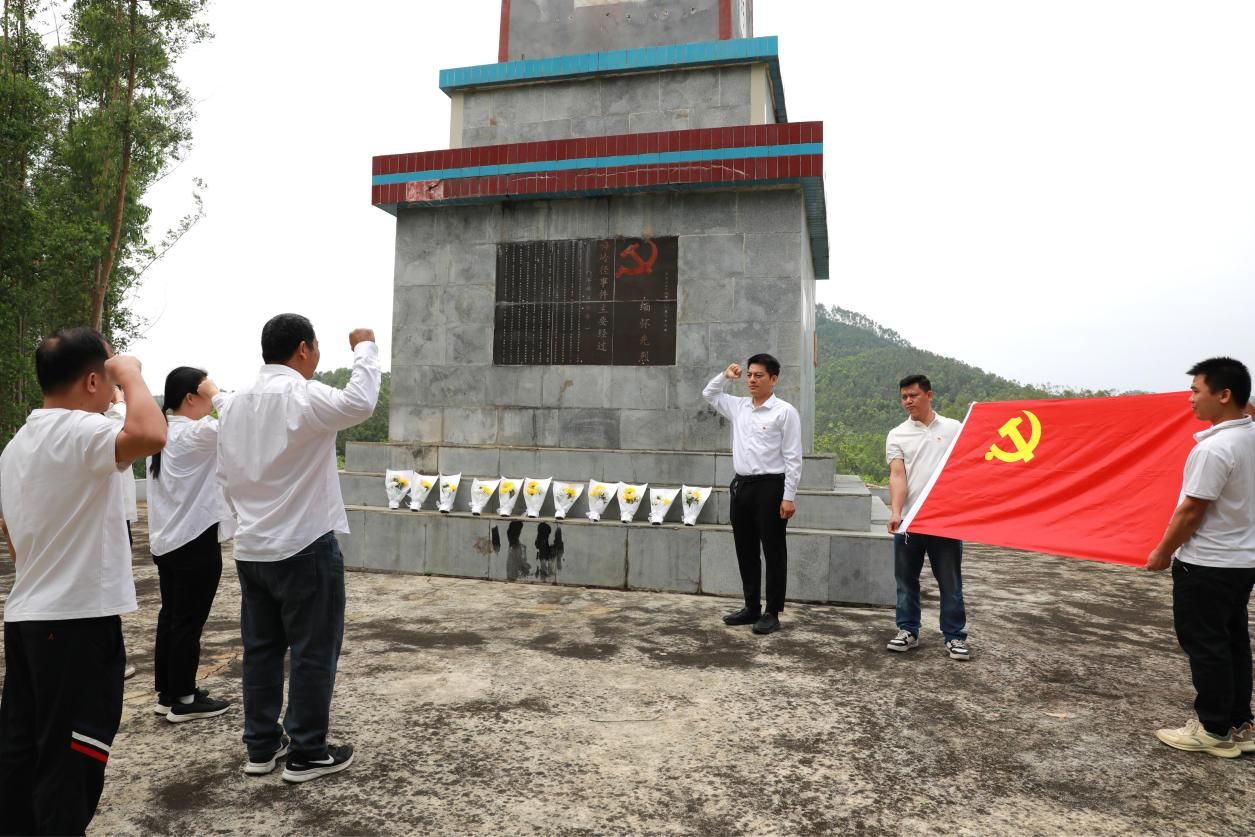 纪念碑巍然矗立,四周绿树环绕,气氛庄严肃穆。全体党员干部整齐列队,神情凝重,向革命烈士敬献鲜花、肃立默哀,以朴素而庄重的方式寄托对先烈的无限哀思与崇高敬意。随后,党员们缓步瞻仰烈士纪念碑,重温入党誓词,在铿锵誓言中重温入党初心,表达为共产主义事业奋斗终身的坚定决心。